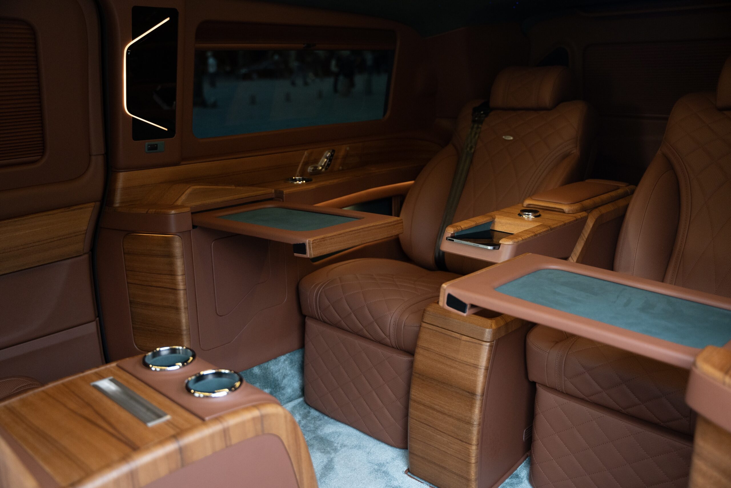 A private mobile lounge offering exceptional comfort in an elegant and intimate setting. Perfect for VIP airport transfers, private business travel, and exclusive evening journeys.