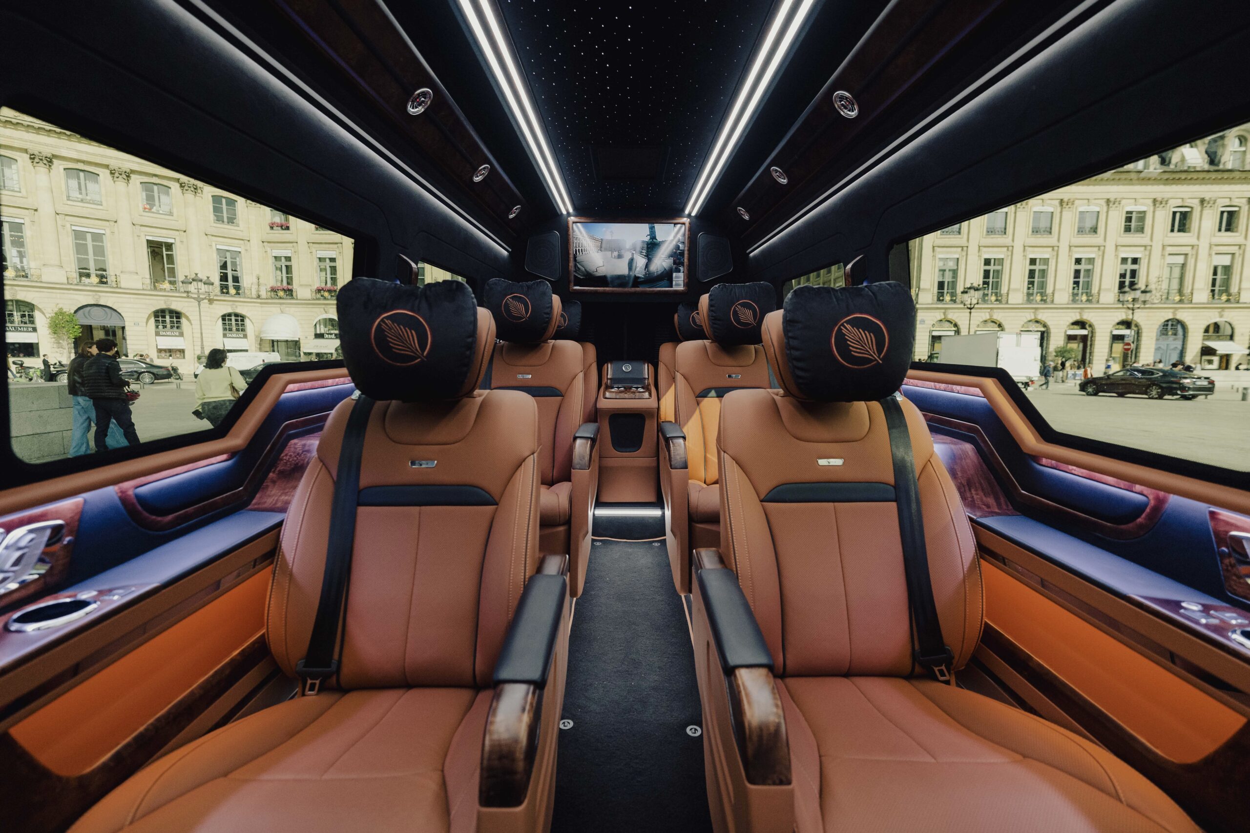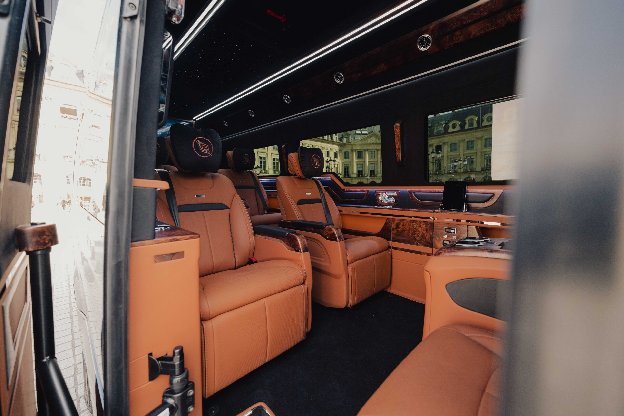 A true rolling lounge, designed as a private mobile suite. Created for those who value comfort, privacy, and refined sophistication, this exceptional interior transforms every journey into a seamless travel experience. Eight sumptuous Nappa leather seats, heated and fully reclining, offer outstanding comfort throughout the ride.