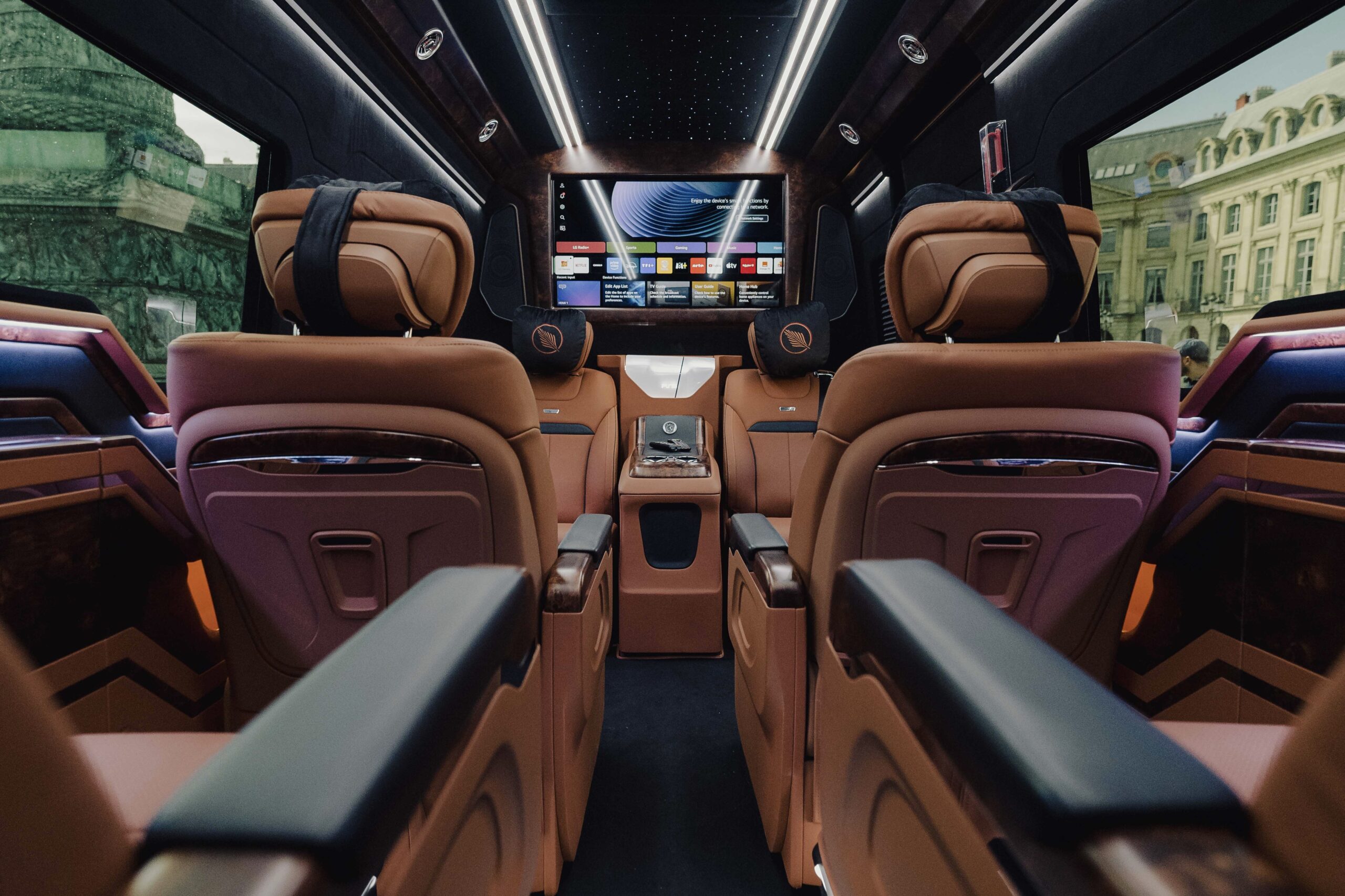 A private mobile lounge offering exceptional comfort in an elegant and intimate setting. Perfect for VIP airport transfers, private business travel, and exclusive evening journeys.